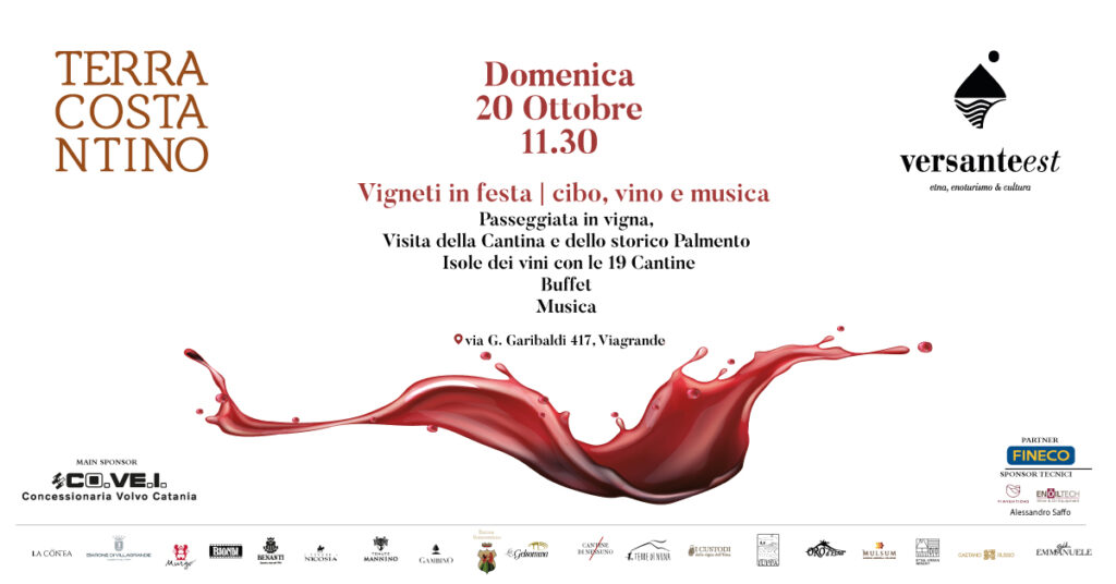 Lo straordinario panorama che spazia dall'Etna al mare, i vigneti storici e un palmento del 1700 saranno lo scenario di Vigneti in festa, l'appuntamento di domenica 20 ottobre a Terra Costantino: